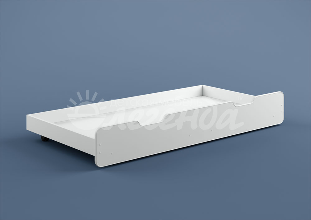 Большой выкатной белый ящик,идеально помещающийся под спальное место кровати Легенда 14 белая.