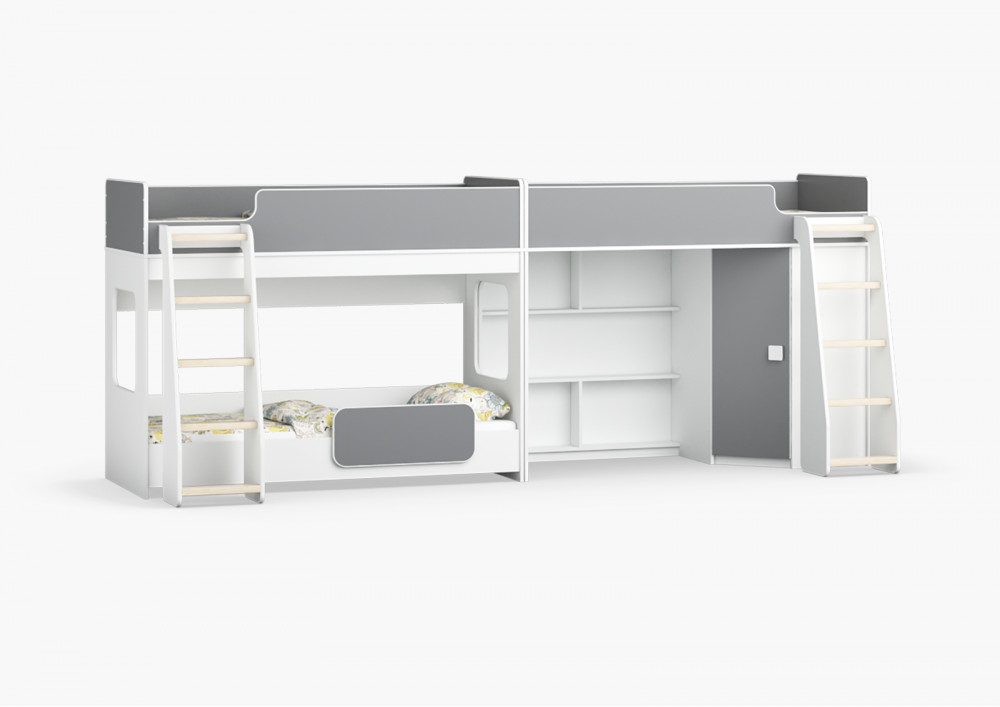 Трехъярусная кровать Легенда 42.4.3 - решение для троих детей с угловым шкафом.