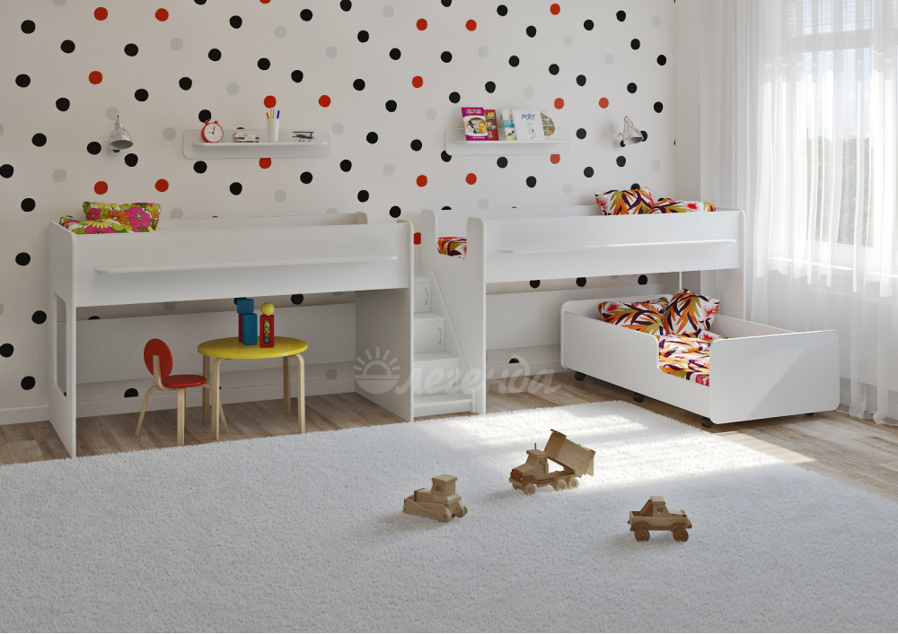 Выкатная кровать Легенда 23.5 белая - интересный и оригинальный комплект для троих детей.